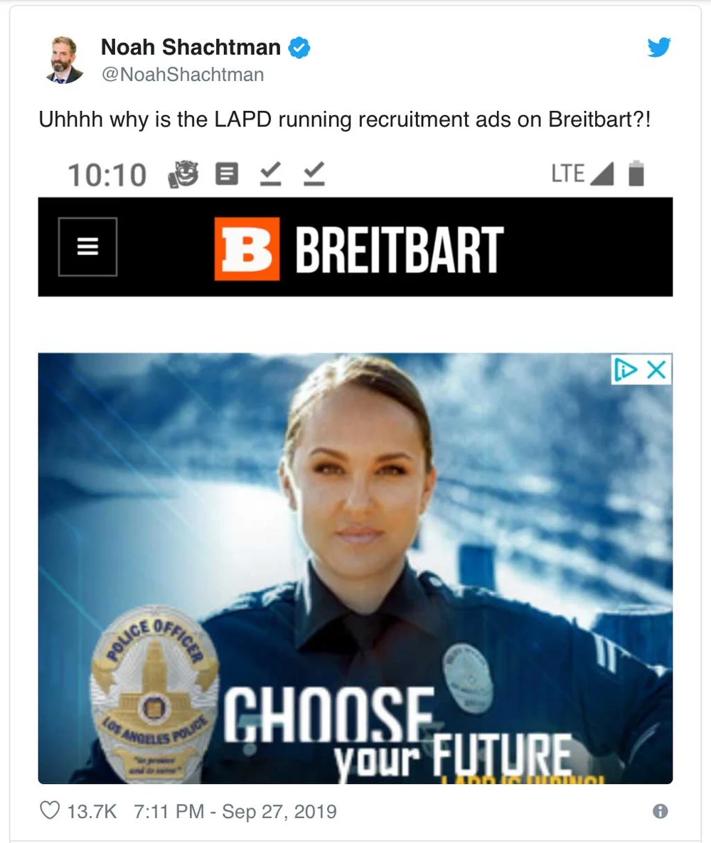 Breitbart Featuring Lapd Recruitment Ad Prompts Department Inquiry The Washington Post